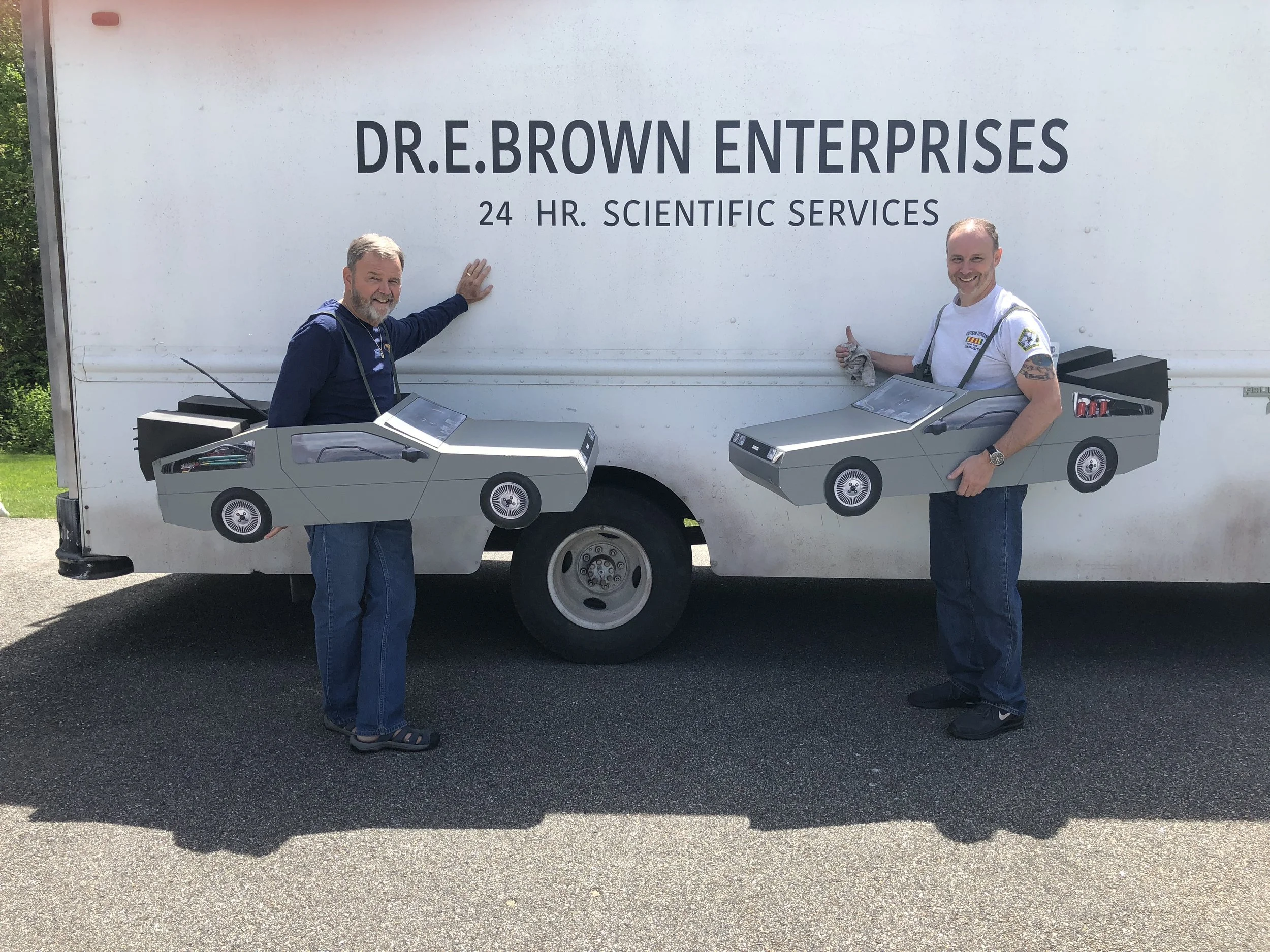 This is a fan built replica of Doc’s scientist van used in the mall scene from Back to the Future. It was built and used at the We’re Going Back celebrations a few years ago. It was painted to look exactly like the one used on screen. This has now been modified to include a working ramp system which enables us to load the time machine into the back of it. It is a now fully functioning and works on remote control. The ramp, not the time machine :)
